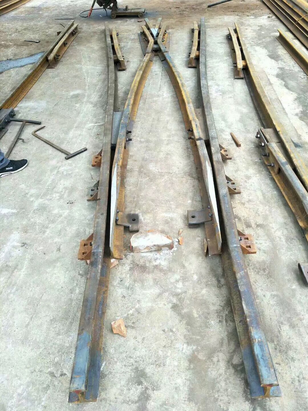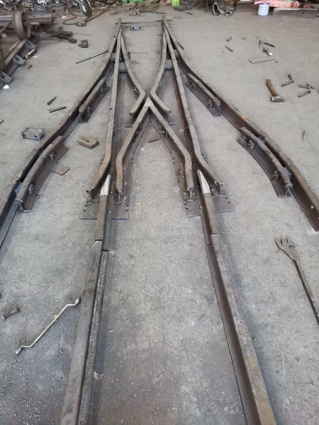 在上世紀(jì)六十年代林州人民(原林縣),自力更生,艱苦奮斗,在非常艱難困苦的歲月里,修造了舉世聞名的“人造天河”紅旗渠,被譽(yù)為世界八大奇跡之一,在新世紀(jì)的今天,林州兒女踏著前輩的足跡,發(fā)揚(yáng)紅旗精神,繼續(xù)前進(jìn),為振興經(jīng)濟(jì)中原崛起,在原來的基礎(chǔ)上不斷創(chuàng)新發(fā)展,使企業(yè)躍上了新的臺(tái)階。 我公司為上新產(chǎn)品整鑄道岔,斥巨資擴(kuò)建廠房,引進(jìn)設(shè)備,聘請(qǐng)人才,特聘(原煤炭部北京設(shè)計(jì)研究院)道岔專家胡工為我公司技術(shù)總監(jiān),特聘鐵道部寶雞橋梁廠鑄造專家王工為質(zhì)檢總監(jiān),經(jīng)過多方努力,無數(shù)次的試驗(yàn),整鑄道岔于2003年終于試制成功,并已批量生產(chǎn)投放市場(chǎng),受到了各用戶的一致好評(píng)和青睞。 拼裝道岔是用螺拴和鉚釘連接在一塊的,使用后經(jīng)礦車往來的軋壓和雨水的腐蝕,很容易出現(xiàn)螺帽脫落,鉚釘松動(dòng),造成機(jī)芯解體或損壞,而影響了正常的生產(chǎn)運(yùn)輸和造成重大安全隱患,而整鑄道岔機(jī)芯是高溫一次澆鑄成型,經(jīng)粹火,正火等多道工藝處理,其金相組織結(jié)構(gòu)嚴(yán)密,抗拉抗沖擊性能極高。它是由多種元素組成的低合金剛,耐磨系數(shù)是普通拼裝機(jī)芯的4倍,從而大大降低了使用單位的生產(chǎn)成本,減少了更換、保修、保養(yǎng)等麻煩,整鑄道岔的優(yōu)點(diǎn)再者就是承受能力大,運(yùn)行速度快,使礦進(jìn)的運(yùn)輸量大幅度的提升、整鑄道岔的安全性能很好,因?yàn)樗且淮涡詽茶T成型的,在設(shè)計(jì)和生產(chǎn)過程咽喉部位已加高和加厚(俗稱道岔的有害空間),排除了車輪通過此段掉道的弊端,因此使礦車的速度大幅度提高,為使用單位多創(chuàng)了良好的經(jīng)濟(jì)利益。