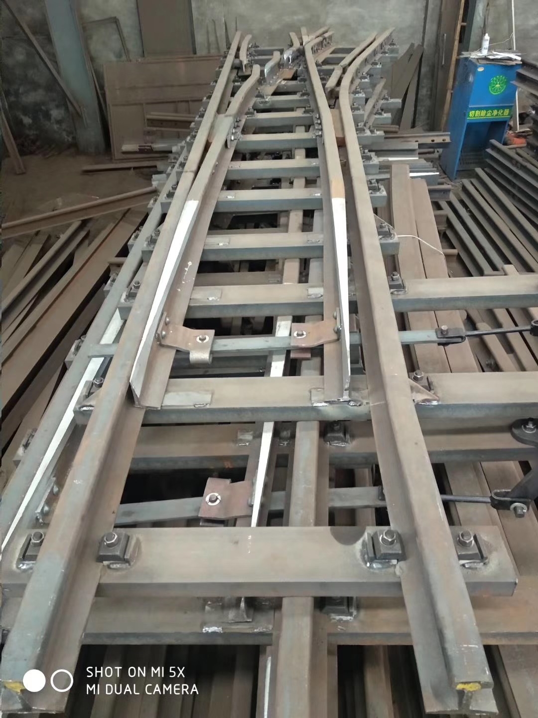 在上世紀(jì)六十年代林州人民(原林縣),自力更生,艱苦奮斗,在非常艱難困苦的歲月里,修造了舉世聞名的“人造天河”紅旗渠,被譽(yù)為世界八大奇跡之一,在新世紀(jì)的今天,林州兒女踏著前輩的足跡,發(fā)揚(yáng)紅旗精神,繼續(xù)前進(jìn),為振興經(jīng)濟(jì)中原崛起,在原來的基礎(chǔ)上不斷創(chuàng)新發(fā)展,使企業(yè)躍上了新的臺階。 我公司為上新產(chǎn)品整鑄道岔,斥巨資擴(kuò)建廠房,引進(jìn)設(shè)備,聘請人才,特聘(原煤炭部北京設(shè)計(jì)研究院)道岔專家胡工為我公司技術(shù)總監(jiān),特聘鐵道部寶雞橋梁廠鑄造專家王工為質(zhì)檢總監(jiān),經(jīng)過多方努力,無數(shù)次的試驗(yàn),整鑄道岔于2003年終于試制成功,并已批量生產(chǎn)投放市場,受到了各用戶的一致好評和青睞。 拼裝道岔是用螺拴和鉚釘連接在一塊的,使用后經(jīng)礦車往來的軋壓和雨水的腐蝕,很容易出現(xiàn)螺帽脫落,鉚釘松動(dòng),造成機(jī)芯解體或損壞,而影響了正常的生產(chǎn)運(yùn)輸和造成重大安全隱患,而整鑄道岔機(jī)芯是高溫一次澆鑄成型,經(jīng)粹火,正火等多道工藝處理,其金相組織結(jié)構(gòu)嚴(yán)密,抗拉抗沖擊性能極高。它是由多種元素組成的低合金剛,耐磨系數(shù)是普通拼裝機(jī)芯的4倍,從而大大降低了使用單位的生產(chǎn)成本,減少了更換、保修、保養(yǎng)等麻煩,整鑄道岔的優(yōu)點(diǎn)再者就是承受能力大,運(yùn)行速度快,使礦進(jìn)的運(yùn)輸量大幅度的提升、整鑄道岔的安全性能很好,因?yàn)樗且淮涡詽茶T成型的,在設(shè)計(jì)和生產(chǎn)過程咽喉部位已加高和加厚(俗稱道岔的有害空間),排除了車輪通過此段掉道的弊端,因此使礦車的速度大幅度提高,為使用單位多創(chuàng)了良好的經(jīng)濟(jì)利益。